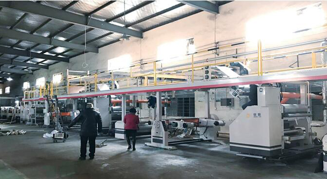 我公司專業(yè)制造彩色瓦楞紙板生產(chǎn)線,從原紙通過(guò)瓦楞成型、二次上膠、再走形,然后通過(guò)模切一次性成型(紙盒)。減少了生產(chǎn)過(guò)程來(lái)回轉(zhuǎn)運(yùn)收的工序,減少了員工繁重的工作量,降低成本,節(jié)約了能源,提高了工作效益。